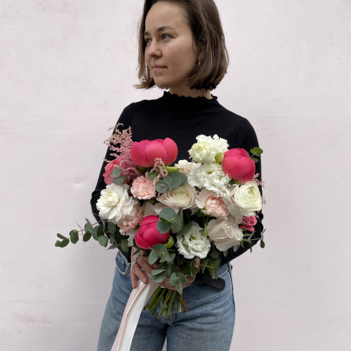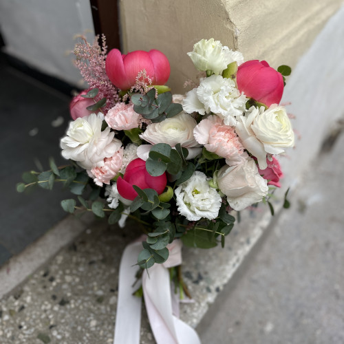 Výběr svatební kytice není jen tak. Kromě vzhledu záleží na tom, jak celá vazba ladí s další výzdobou a zda je v souladu s osobností samotné nevěsty. Jsou-li mezi vámi budoucí nevěsty, které si potrpí na romantiku, pak je pro vás tato kytice tím pravým. Světlé a růžové tóny růží ve spojení s eukalyptem dohromady tvoří krásnou kytici, která v tento slavnostní den podtrhne vaši krásu.