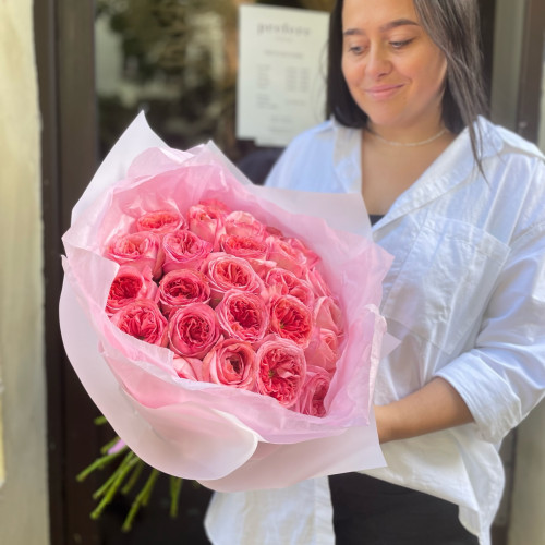 V jednoduchosti je krása. Překvapte své blízké kyticí růžových pivoňkových růží. Tyto speciální růže „David Austin“, „Tambuzi Roses“ a „Vip roses“ jsou ojedinělé a velmi oblíbené i u předních floristů. U nás však čelí velkému zájmu ze strany mladých slečen a dívek. Pokud chcete zaručeně udělat radost, tak s pivoňkovými růžemi nikdy nešlápnete vedle. Navíc jsou symbolem lásky a půvabu. Součástí vazby je ozdobný papír, který ladí s celou kyticí a není nutné ho odstraňovat.